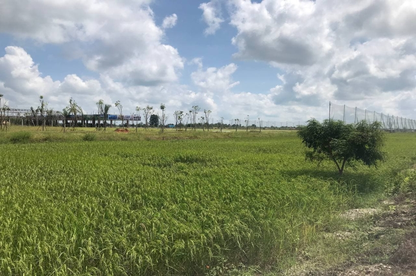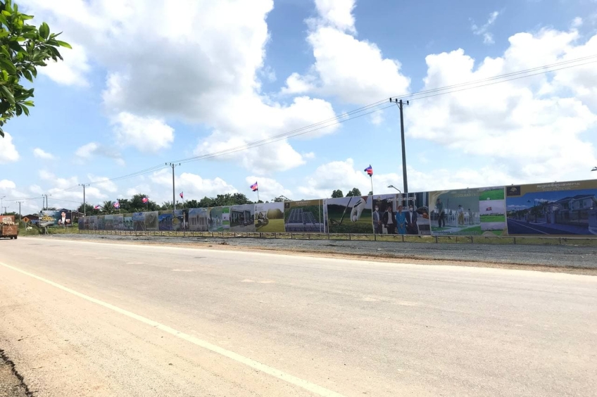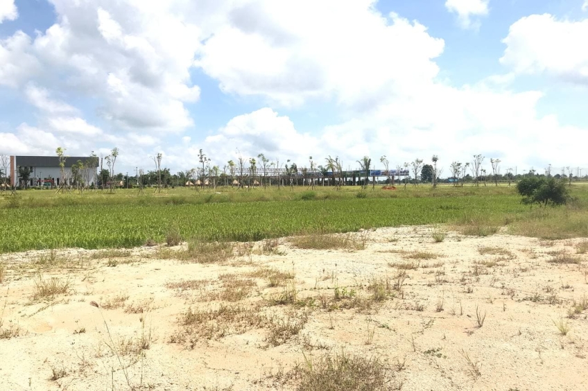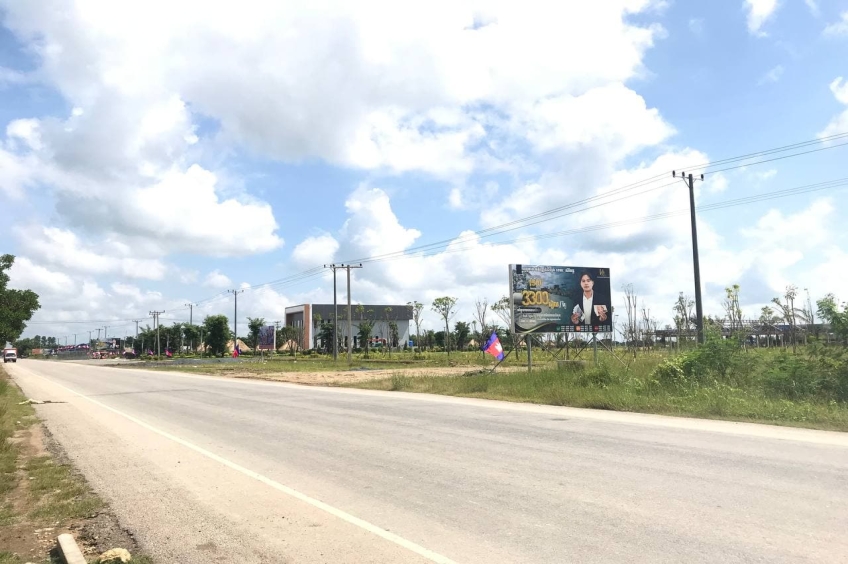 ដីលក់ទំហំ 30m x 400m ដែលមានទីតាំងនៅជាប់គំរោងអភិវឌ្ឍន៍បុរី ផ្ទះល្វែងនិងខុនដូរ ការសុីណូនិងកន្លែងវាយកូនគោលរបស់ លោក ខេមរះ សិរីមន្ត