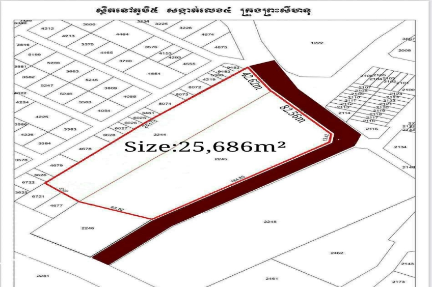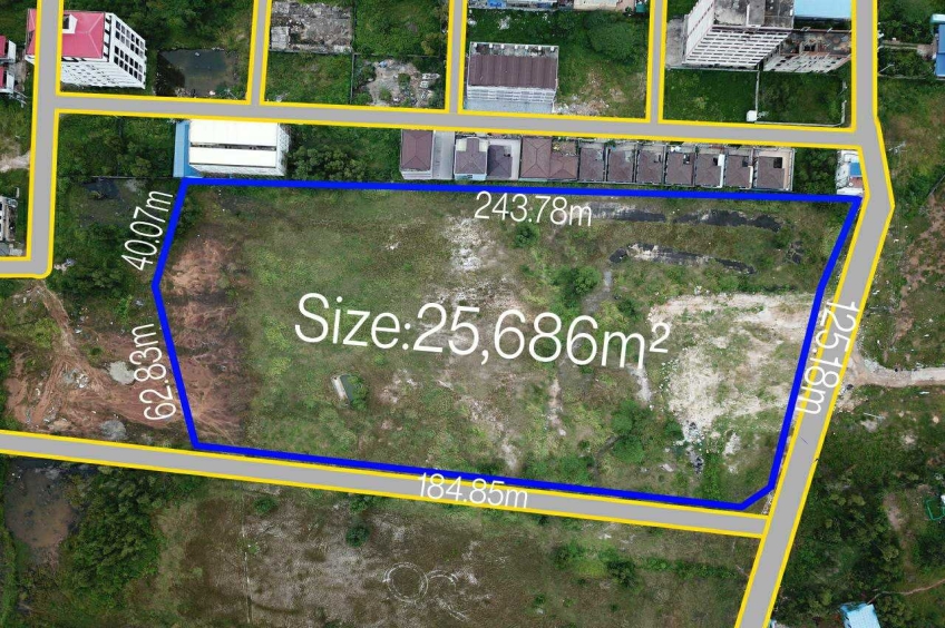ទីតាំងពិសេស តម្លៃពិសេស កាលទិញ 670$/m2 ឥឡូវលក់ខាត់ចោល រួសរាន់ឡើងមេៗ ទិញទុក ឬធ្វើគម្រោងធានាមិនខុសឡើយ។ ទំហំ: 25,686m2 (ប្លង់រឹង) តម្លៃ: 355$/m2 (ចរចារ) ទំនាក់ទំនងម្ចាស់ផ្ទាល់: 060550003